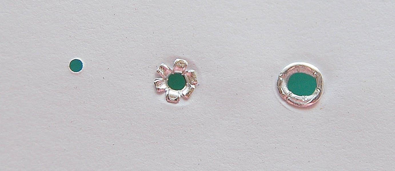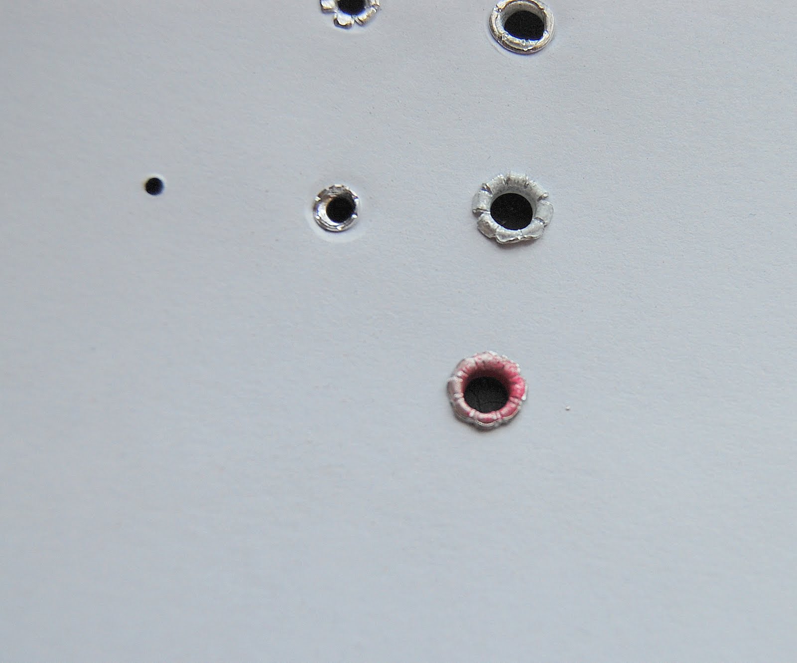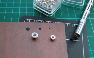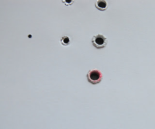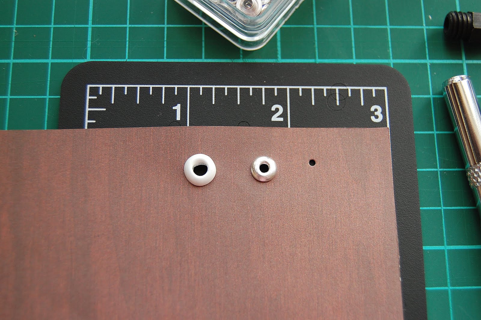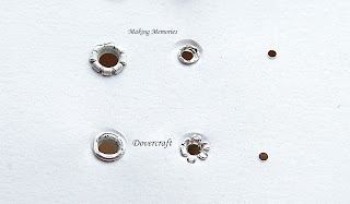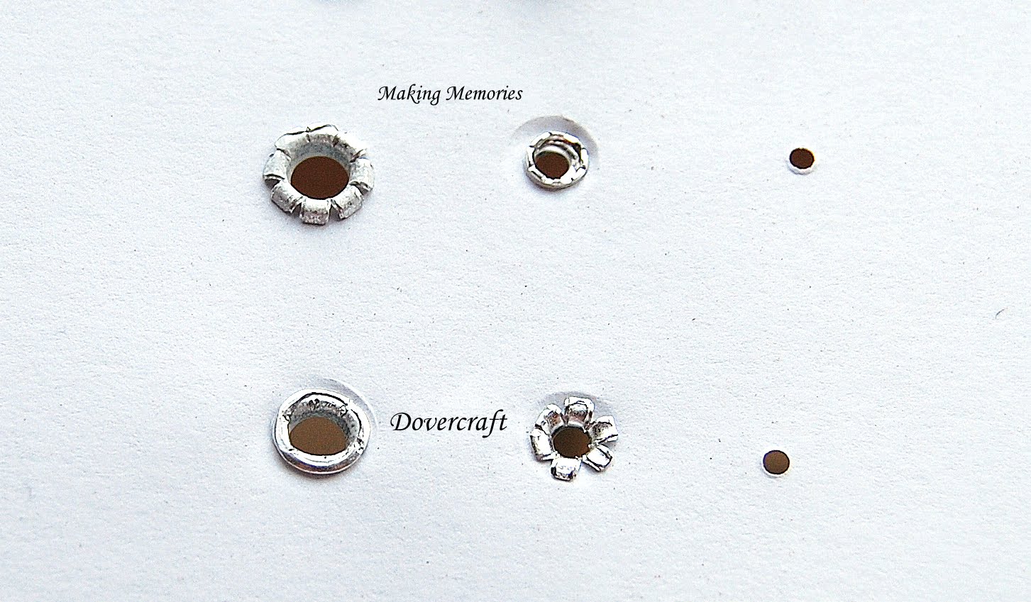Сначала поставим люверсы тех же диаметров подходящими насадками от Making Memories (верхний ряд - люверсы установлены с помощью установщика Making Memories, нижний - установщиком Dovercraft):